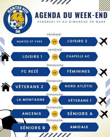 Nantes sud 98, club de football à La Gilarderie à Nantes pour joueurs de tout âge et tout niveau, avec des équipes juniors et seniors, des formations pour les jeunes. Découvrez sur ce site les actualités de l’association sportive, les classements, résultats, agendas des équipes et les produits en vente à la boutique du club.