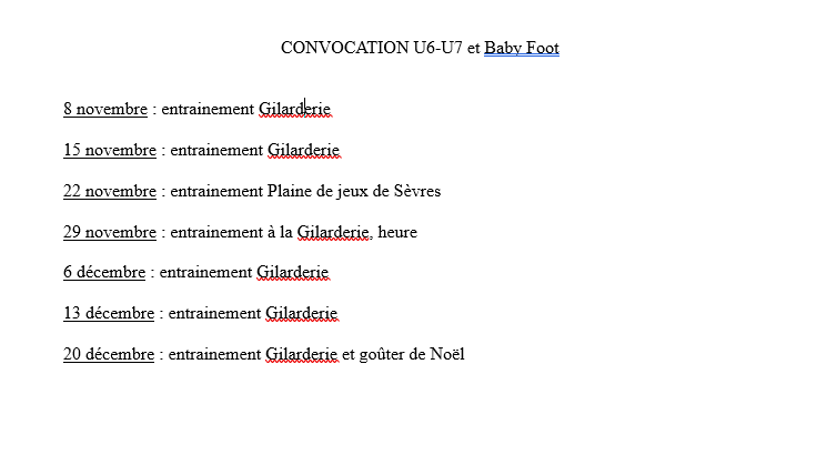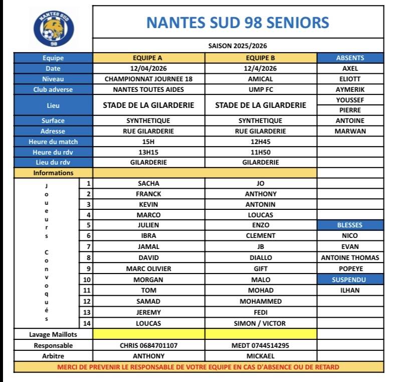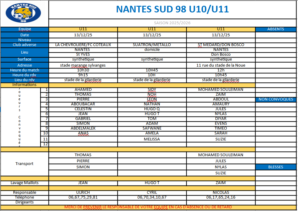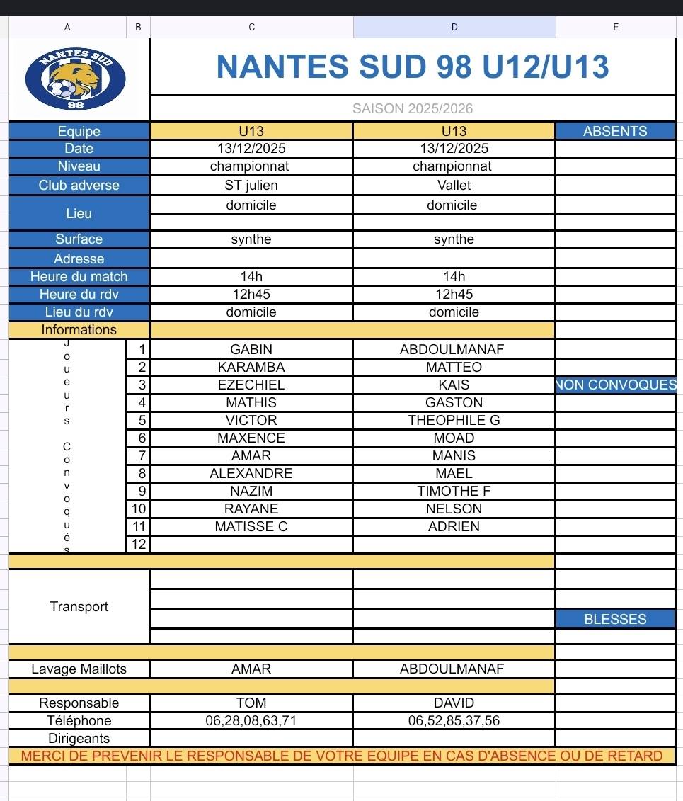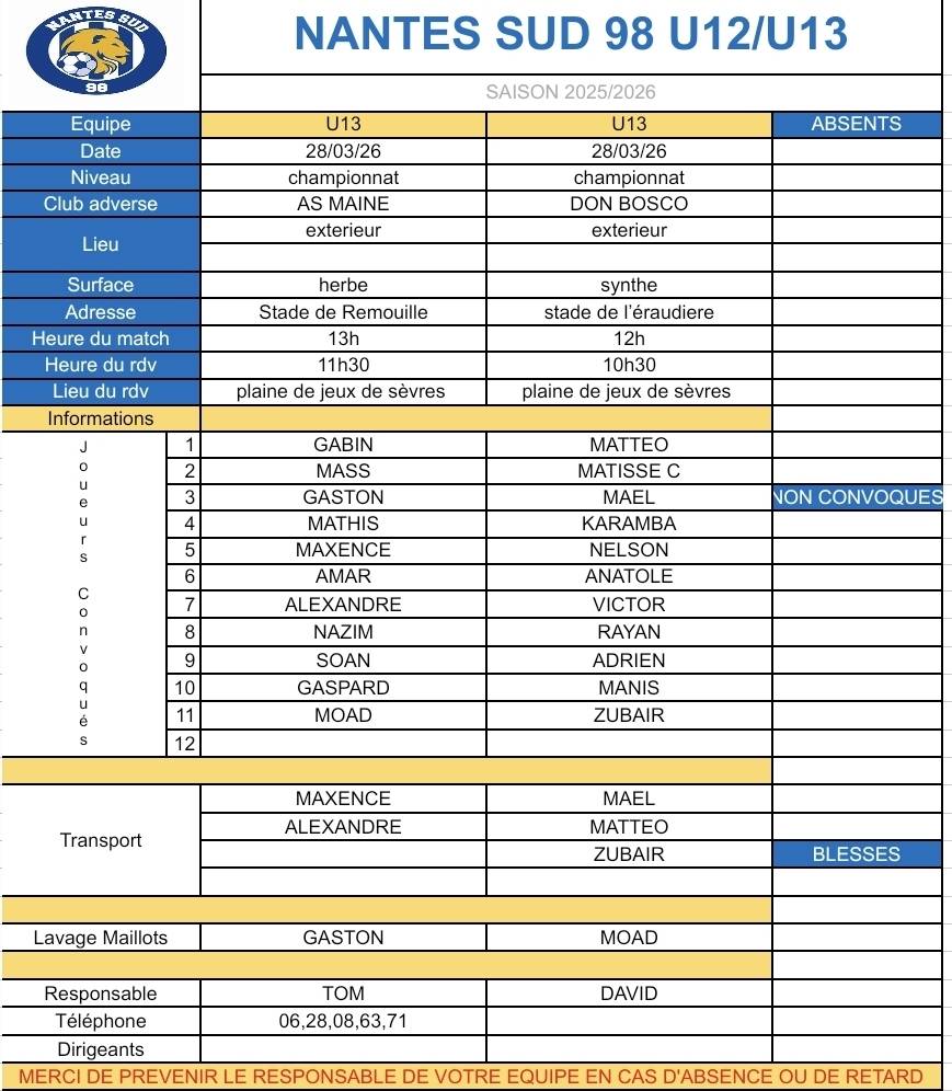 Informations U12 U13