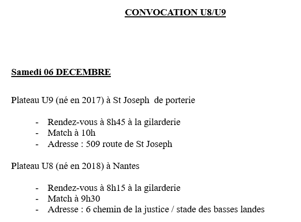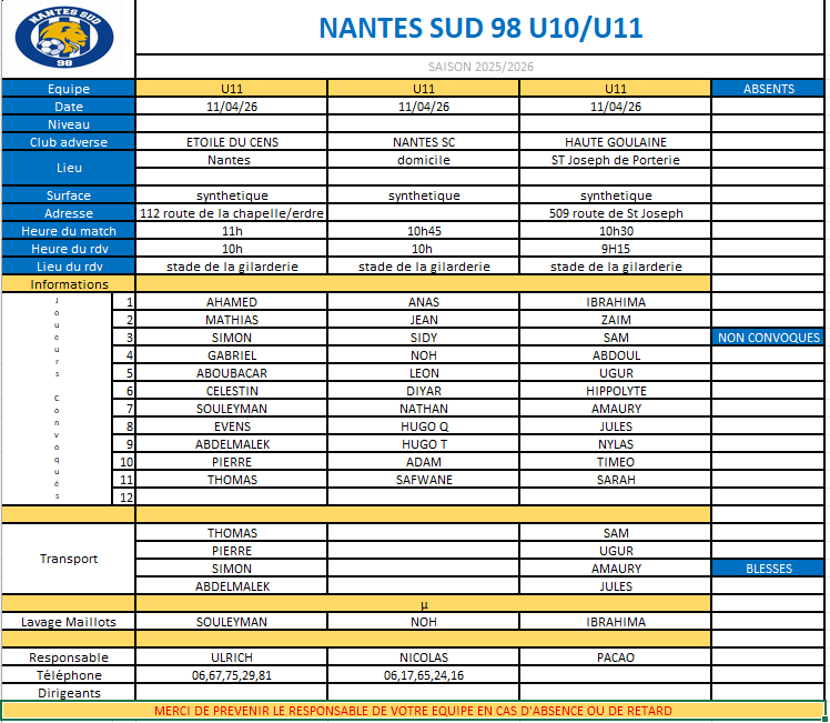 Informations U10 U11