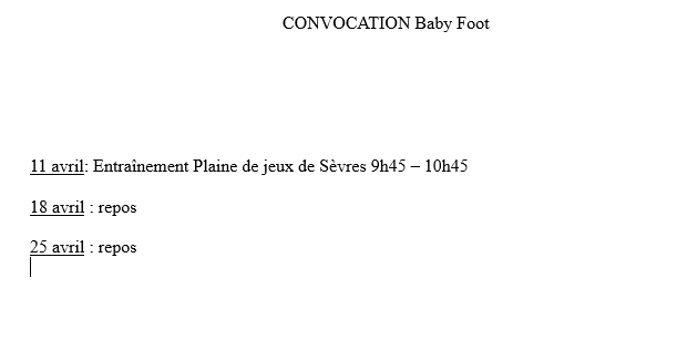 Calendrier U10-U11