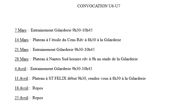 Calendrier U10-U11